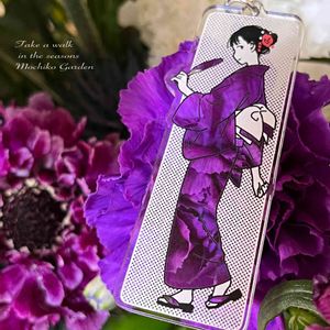 美しく青きドヨウ🏷 お散歩ちゃんキーホルダー🏷 大人の着せ替え人形🏷 コラボ投稿① 見返り美人のひなたちゃんは 紫のカーネーションで💜