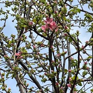 カリンの花🍐 咲いてきました話( ˊᵕˋ*) かわいいピンク色です💕