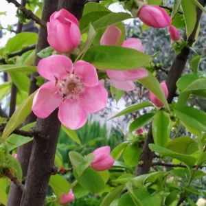 花梨(カリン) 咲いちゃった。 和梨の花が咲くのとズレる事なく花梨も開花。 これも去年より2週間早いな。 雨風前に咲くなんて、実がなる果樹にとっちゃあタイミングよくないな。 花粉落ちるし蜂来れないし。 うちの花梨は今年おもて年だから期待してんのに。 まぁいい。 この淡いピンクの花姿って恋する乙女にしか見えないし、ある意味桜より純情可憐さがあるし。 「金はカリン」て意味で縁起物の木だしね。 雨の週末ゆっくりとお過ごし下さいませ!
