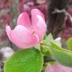 おはようございます。 千葉外房は☂️がしとしと降っています。 寒いのでコタツに入ってます。🥰 花梨の花が咲いてます。 昨年より二週間程遅いですが、ビンクが際立っていますよ✨ 背景にはモミジが写ってます。アハ😅