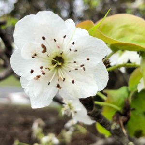 散歩中に畑の中で咲いていました😊 梨🍐かリンゴの花の様に見えたのですが何でしょうか?
