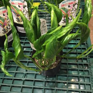 スーパーの花コーナーに売ってたポトスの新品種テルノシャングリラ。今までにない先のとがった巻き葉が個性的らしい!