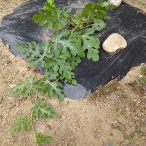 9ヶ月の娘が、スマホでポチリして 購入してしまったスイカの種… ようやく植えられそうなくらいまで 成長しました😄 花と野菜用の土を深く掘った穴に 一袋分どさりと入れ マルチを四角形にして穴に被せ 端は土を寄せてマルチの端を埋めて マルチの真ん中を丸くくり抜いたとこに この苗を植えてきました😊 まだ苗が小さいので 保温効果を高めるため苗帽子を 被せてあります。 さて、時期がずれている この苗からスイカは収穫できるのでしょうか🙄お楽しみ〜