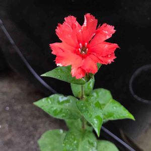 マツモトセンノウです。 自然大好き派😘、兼園芸も好きかも派です😅。マツモトセンノウは4色あり、今日はセンノウ類の代表的な朱色です。今朝の早朝の雨により葉っぱは濡れていますが花は開花したばかりなので中心部は濡れていません。まるで写真を撮るのが分かっていたかのようです😊。