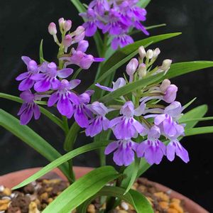 ウチョウランです。 自然大好き派😘、兼園芸も好きかも派😅です。ウチョウランが次々に咲き始めました。ただ、元が先輩からの頂きものですので種類は多くありません。色は赤紫、白、この中間色だけですがどれもランらしい気品があります😊🤗🤗。