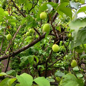 果樹園の早生小梅が完熟🥭の域に😃。 既にポトポト落果も始まっており、今週末にも採って、梅干し漬けなきゃ💪。
