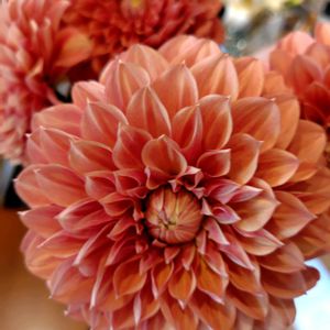 こんばんは🌃 今日のお花🧡ダリア🧡 ①この前イケメン君のお花屋さんにあったダリア🌼 大好きな色合いです〜😍 ②今育てているダリア ラベラグランデ チョコレートアプリコット 蕾が控えてるけど気温が低いからかなかなか咲きません😅 ③散歩で見た可愛い八重咲きのダリア…葉っぱがうどん粉病でした💦