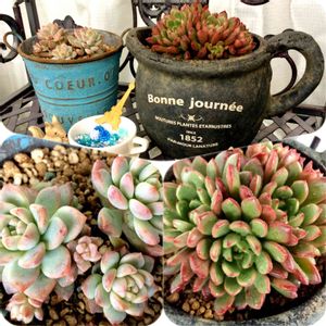 今日は多肉日和ですね🎵🎵 何個か寄せ植え作りました❤️ picの鉢には、大好きな1号ちゃんばかりを入れてみました❤️