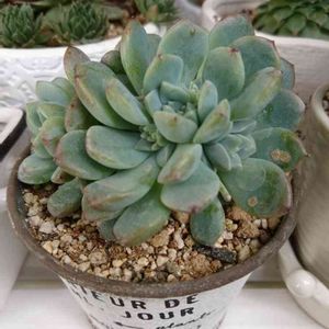 館林の「サボテン相談室」に向かった、一番の目的はこの大型になるE.prolifica'DarleySunshine'をゲットするためでした💖 素敵すぎる、色と形、そしてネーミング✨✨ 最近、プロリフィカばかり狩っていて、中でもこれはNo.1の、お気に入りになりそうですね💕 《追記》 プロリフィカ(プロリフィラ)は、かつてはセダム属の分類でしたが、セダムの花の構造ではないとのことで、エケベリアに転属になりました。 私は比較のために、元祖プロリフィカとプロリフィカ錦も栽培してますが、元祖が一番葉が肉厚でコロコロしてて、確かにセダムに見えます。錦とこのDarleySunshineは葉が若干細長く薄いので、何かが掛かっていそうです。 羽兼氏に確認して訊いてきましたが、何か形質的に近い品種との交配種か倍数体ではないかと、仰っていました。