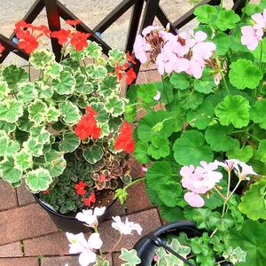 💗❤️咲き揃ってきました❤️💗 雨続きのなかでも、4種中3種が咲いてくれました。 気持ちが明るくなる花色です。 フウロソウ科 テンジクアオイ属 ゼラニウム 斑入り葉ゼラニウム 矮性ゼラニウム黒雲竜、光山錦 アイビーゼラニウム エレガンテ