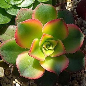 💚💗💛可愛くなっていました アエオニウム属の寄せ植えプランターの中で、色づいてチョッとおめかし気分かな😚 ベンケイソウ科 アエオニウム属 デコルムf.バリエガータ 夕映え