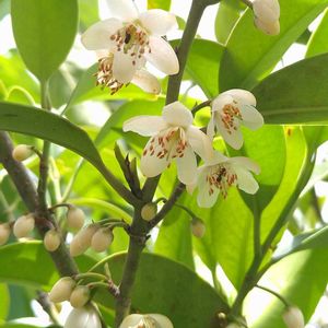 正しい名前がやっと分かりました。本榊の花。とても良い香りがします。