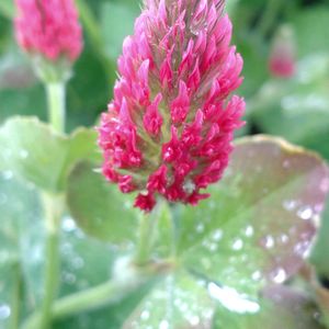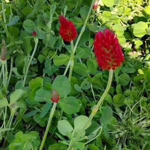 ベニバナツメクサ(紅花爪草) 別名 ストロベリーキャンドル *マメ科シャジクソウ属 花期は4〜6月 高さは20〜60cm ヨーロッパから西アジア原産の多年草! 明治時代に牧草として導入され関東以西では野生化が報告されているようですが、ここ岩手県でも野生化したベニバナツメクサを見つけました! ③.葉っぱをを見ると一度刈られたあとにまた咲き出したようです! 緑肥植物として土壌改良にも使われレンゲ草などと同じように根に根粒菌を持ち窒素固定能力があり肥料効果がある事から利用されています! 花姿が特徴的で ドライフラワーなどにも利用されているのだとか! 今回初めて見つけましたが、遠目には まるで熟したイチゴのようでした❣️ 8月1日撮影 岩手県 大船渡市