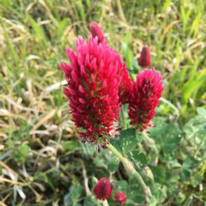 ベニバナツメクサ ストロベリーキャンドル、ストロベリートーチ、ベニバナツメグサ、クリムソンクローバー(crimson clover)、オランダレンゲなどの別名を持つ