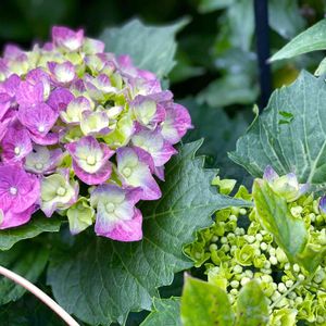 紫陽花 プティ☺︎ お花が重くて下がってしまうので支柱で支えています