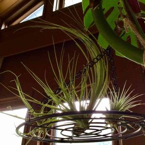 外で管理していたら、葉っぱがちぎれてかわいそうな姿に😭 ワイヤーでぶらさげてたのがいけないのかな?と反省して、おうちに固定してみました☺️ キレイな葉っぱが増えるといいなぁ🤗