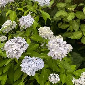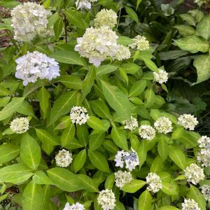 《山紫陽花》*伊予白 *舞妓 HCで見切り品のポット苗をお迎えして三年 初めてお花をつけました☺️✨ もうひとつ*伊予の花火がありましたがその子は冬を越せませんでした。 山紫陽花は冬は細い枝だけになるので春になって新芽が出るまで枯れたかどうか分かりにくいですね。