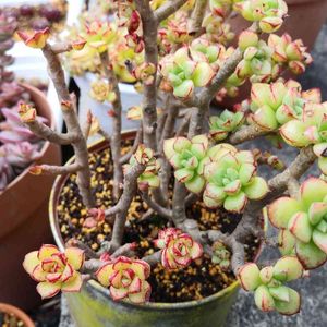 冬の間、長男の部屋に取り入れていた多肉たちを外へ出した🥳 水やりと枯葉取りもしてスッキリ✨ 木立アロマティカス🥰めちゃ可愛い💕