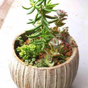 今日の1枚は、そのまま飾れるスチパン鉢寄せ植え💕 メル狩り