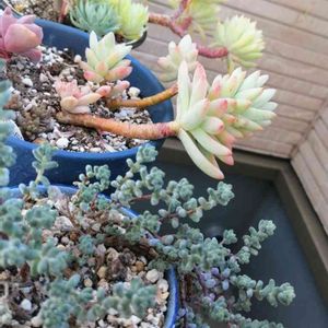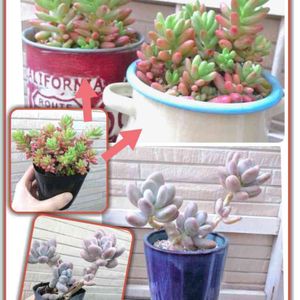 エケベリア 桃太郎🍑 大大大好きな子(*ˊ˘ˋ*)💕 好きすぎて今ウチには数個の桃ちゃんがいる(´ `*) ェヘヘ このpicの桃ちゃんは1年前くらいかダニにやられちゃってブチャイクに(。´・ω・`。) 薬剤かけまくり棚の隅に😅💦 がしか〜し 今ではウチの桃ちゃんの中で一番のベッピンさんに💖 スカスカになってた鉢に庭の紅葉したセダムちゃん達をin🎶🎶 可愛いなぁ〜( ⸝⸝⸝⁼̴́◡︎⁼̴̀⸝⸝⸝)💕←親バカ🤣