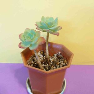 もらった😙🎵 放置してウネッてる多肉があるよ!ってことで、整理するときがあれば是非❇️と話していた多肉さんが来た💡 多分朧月かな🌱✨ 鉢もお絵描きして、この子用に👍💨 カット苗だけど、気根が生えてるから根付くのは早いかも?
