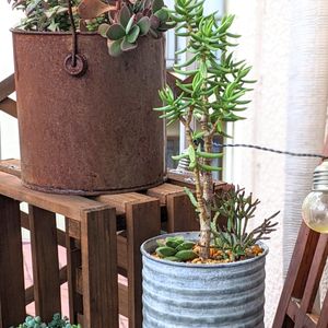 雨が降る前に おしゃれ鉢三点をまとめ撮り! 見苦しくならないようにたまにセダムを足したり手直し✌️