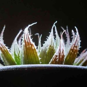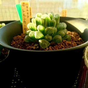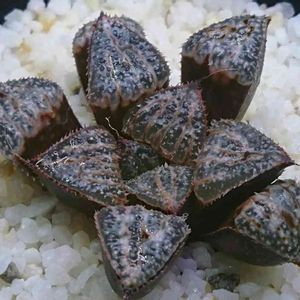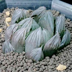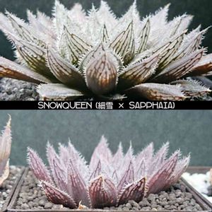 Haworthia hyb. snowqueen 細雪とサファイアの交配種。 最終形態がなかなか渋綺麗。 新しい交配種ではないのですがあまり見かけません。 まだ上下共に若いです。 上の株も去年はまだ下の株位でした。 別途に葉挿しからも成長中。 私好みの磨りガラスな窓に明瞭な葉脈が入る美種です。