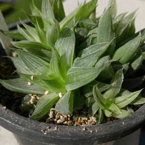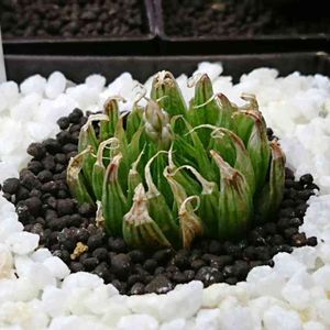 スノークィーン のまだ小さい株。 細雪とサファイアの交配種。 ハリーの様に窓は透明ではなく曇りガラスの様になるタイプ。 他のハオ同様、完全体になると激美。 ハリーやムラサメよりも簡単に緑から色付く。 個人的に交配種の傑作だと思うのです(≧▽≦) ネットサーフィンしてもあまり見ないので結構レア?かも。 もう一回り弱小さい株もあるので・・・2株目。