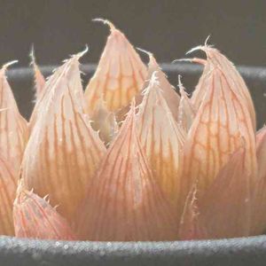 ハオルチア バテナエ 2014年に輸入された株。 バッテナエ(ジンゴロさんの指摘により訂正;正確にはバッテニアエ)なのかなぁと思いつつ育成中。 ブラックベルディアナに良く似ていますが、成長につれ葉は細くなり、やや透明度が高く大きめの窓が特徴。