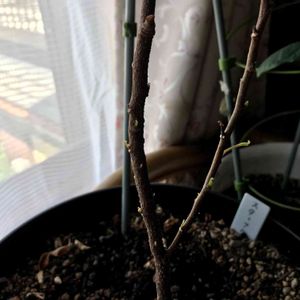 スターフルーツの実生苗です。冬越しに失敗して枯れたかと思いましたが、芽が出てきてくれました。