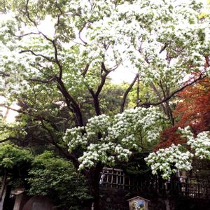 又又コメント無しで投稿ボタン押してしまいました。 此れも窓を開けたら見える景色です。 巨大な木で モクセイ科 ヒトツバタゴ 別名、ナンジャモンジャ。 と言います 右下の写真の様な 真っ白の小さな花が巨大な木全体に拡がります。近くで見るより少し離れて見た方が映える木です。 その昔、水戸の黄門様が時の将軍に 何と言う木じゃ? と聞かれ、咄嗟に 何じゃモンジャ! と言われたのが名前の由来説の一つらしいですよ!