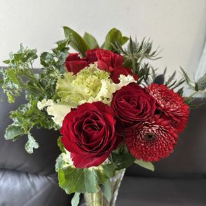お友達がお誕生日のお祝いの花束を届けてくれました。実は誕生日は先月だったんだけど、母が亡くなったばかりだったので、落ち着いた今届けてくれて、久しぶりにゆっくりお話できました。真っ赤な素敵な花束!ん?年がバレたかな😅