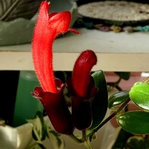 久しぶりに咲いてくれました いつまでも覚えられない名前の エスキナンセス テレッサです 熱帯雨林🌴の木陰に自生する植物らしい 寒さにも弱く葉がポロポロ落ち易い なのに従妹の家から我が家にやって来て三冬目に、、、、、、 今日は 札幌最高気温が真冬日の➖1℃ 花言葉、、、「恥じらい」 「多くの喜び」 北国はさむ〜😨
