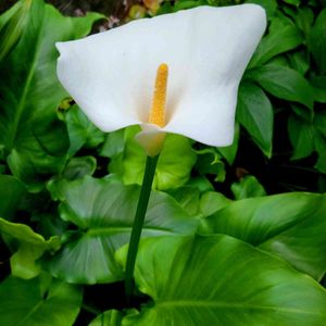 こんばんわ🌃 一般的にカラーでも通じるようです。 ※G.Sサイトより引用📝 「🔰オランダカイウ」という花が、 県道沿いツツジの垣根からひょっこりと現れました。 【基本情報】 サトイモ科オランダカイウ属 原産地>南アフリカ 別名>海芋(カイウ)、カラーリリー カラーは、ユリのような花を咲かせる。 英語で「カラーリリー」と呼ばれています。ギリシア語で美しいの意味を持つ「カロス」から由来したともいわれています。 別名の「海芋(カイウ)」は江戸時代にオランダから渡ってきており、海を渡ってきた芋という意味から由来してます。