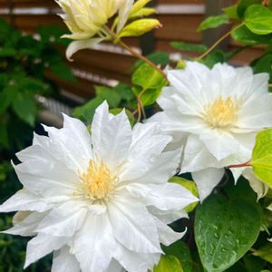 今晩は~🌌 昨夜からずっと雨です☔️ 肌寒い一日でしたが皆さんのところは如何でしたか?🙂 💠クレマチス パテンス八重系 アークティッククィーン 🌿白のクレマチスがやっと咲いてくれました👍😊 ミニバラと一緒に🌹🎶 後ろでバラの花びら散らかしています😂 🐈⬛🐾
