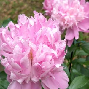 芍薬 どんよりな空なので、明るい花で 元気出そう‼️ 明日からは出掛けられそう(*˘︶˘*).。*♡ 🏷しあわせのピンクの花