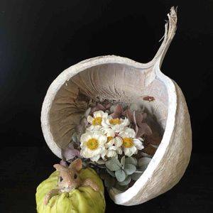 こんばんは!昨夜は大きな地震でしたね💦 恐い思いをされた事でしょう。。😞 しばらく心配ですね💦どうかご無事でお過ごしくださいませ💦🙇♀️ 最近また少しずつハンドメイドを始めまして、 今日はブッダナッツのアレンジを作りました🥜💕 以前レッスンの様子を見て、作ってみたかったのです✨ 拾ったシダーローズやソラフラワーなど使ってみました♪