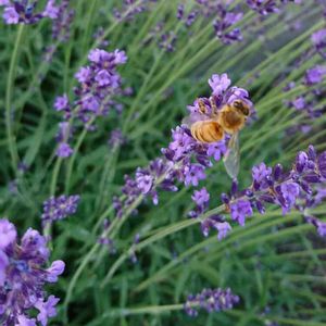 会社の花壇の満開のラベンダー ミツバチ達が忙しそうに蜜集めに飛び回ってたよ🐝⋆︎*゚∗🍯