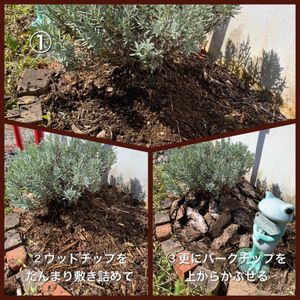 富良野ラベンダー冬越し対策! 昨年までは黒マルチにしてましたが ウッドチップ&バークチップのお布団で 冬越しチャレンジしてみます。 頑張れ٩(°̀ᗝ°́)و富良野ラベンダー❗