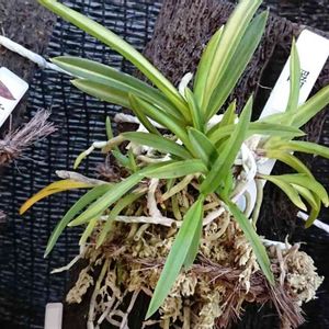 富貴蘭【八重衣】 襟合わせの緩い姫葉、 白色の散り斑縞。