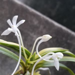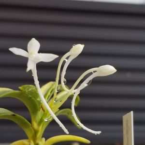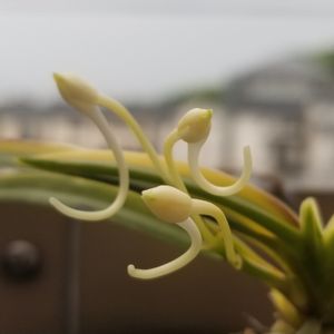 富貴蘭 青王錦(せいおうにしき) 一つ咲きました🎵 不思議な形です(*´-`) 雨のせい匂いがよくわかりません。