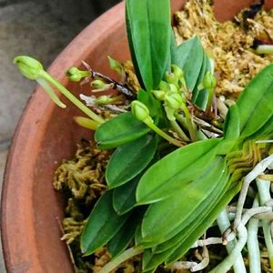 2カ月前、スダレを巻いた筒に植え替えつけたフウラン。 花芽が上がってきました💕 スダレの隙間に新根が入って上手く活着しているみたい。 来年花がいっぱい咲くと香りがいいだろうな〜🐥