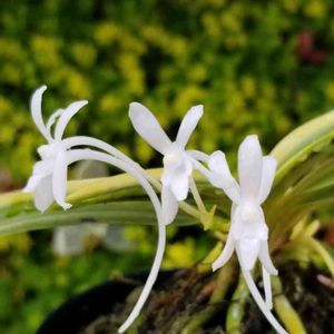 おはようございます 富貴蘭 青王錦(せいおうにしき) 3つだけなのに濃厚な香り🎵 う~ん(^_^;) 香りの表現は難しい。 真っ白❗純白の花です。 青い要素一つもない。 名前の由来は🌱葉かな?