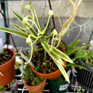 富貴蘭開花。 下に伸びる尻尾が可愛いです。