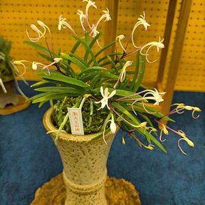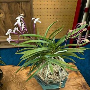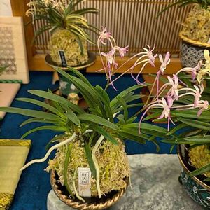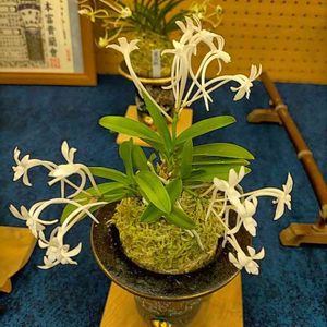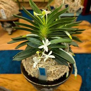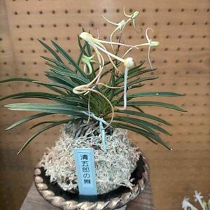 Vanda falcata (旧属名:Neofinetia falcata) 風蘭、富貴蘭 …名前ついてたっけ。 貰ったのだけど 聞いたような聞いてないような 四国の友人から送られてきたので 自分で植えつけてみたけど なんか不格好だわ~(笑) 今日帰ったら、植え直そうかな?