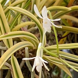 富貴蘭 『天王山』 今年も開花しました。 富嶽系の散り縞斑の芸ですが花は普通のフウランです。 香りもあるのですが先日投稿した紅三彩のほうが圧倒的に強香です。 購入から2年半…根も鉢から飛び出して大変なことになってるのでそろそろ植え替え時か…