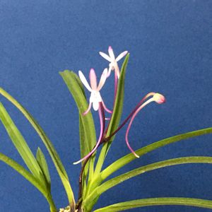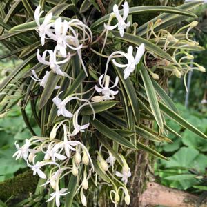 (富貴蘭) 木の下で元気に育ちピンク色がかった花が綺麗に咲きました。 清楚でかわいい😍 他に蕾も付き始めました。