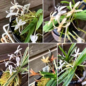 フウラン緑花競演 今咲いている風蘭の緑花集めてみました😁 左上、和歌山県日高の緑花 右上、聖、青根青軸、緑花の逸品 左下、高知県奥美山の緑、翡翠並み緑の濃さ 右下、青風閣、澄んだ緑花 なんか、和歌山県産多くない😯