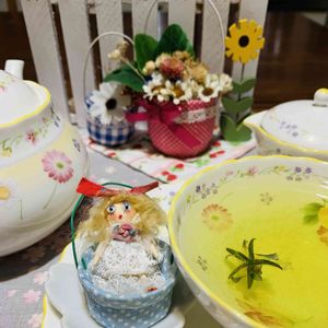 きょうは 雨の日曜日。 マルちゃん家から やって来た 「夢ちゃん」と お茶 しました。 ティーには、摘みたてのボリジを 浮かべてみました。 たまには 「夢ちゃん」と 遊ぶのも 楽しい。