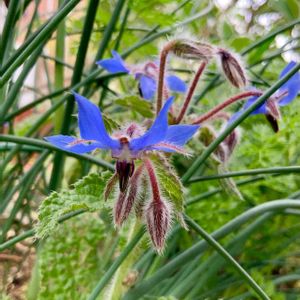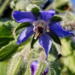 ✦ボリジ✦ 和名:ルリヂシャ 英名:borage その他の名前:スターフラワー、ルリジサ、ルリジシャ 科名:ムラサキ科 属名:ルリヂシャ属 ボリジにはカリウムやカルシウムが豊富に含まれており、風邪を引いたときなどに有効なハーブです。発汗作用や抗炎症作用があり、熱を下げて頭痛などの症状も和らげます。ボリジに含まれる粘液は喉の痛みも鎮めてくれます。 黒髪山に行く途中の天然酵母パン🍞屋さんの庭で出会いました。過去pic 2017 4.4